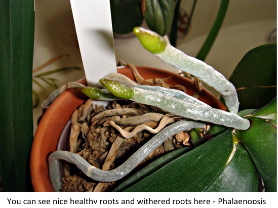 Healthy roots are plump, tuberous and white. They have bright green tips if they are growing or no tips if they are resting.